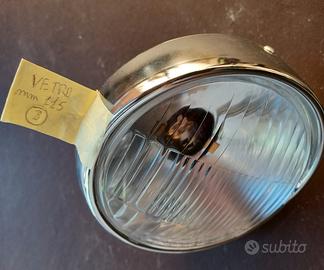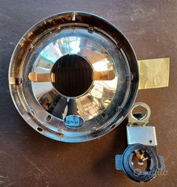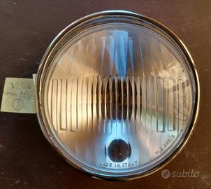 gruppo ottico faro fanale luce anteriore diametro mm 115 completo di cornice cromata e portalampade per vespa piaggio d'epoca anni 70 adattabile modelli super 50ss 90ss primavera 125 et3 così come si vede in foto oppure scambio con ricambi faro basso