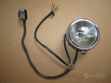 Fanale CEV 105 (con parabola leggermente rovinata nella parte bassa) x motociclo 3 luci con induttanza per regolare la tensione, completo di cavi e devioluci CEV 169 a euro 150. - CEV 105 x ciclomotore 50 a 70 euro.