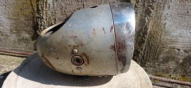 Fanale d 'epoca vintage smontato da una Ducati era completo di tachimetro ma andato perduto condizioni discrete vetro e parabola integri misura vetro interno 10,5 cm esterno ghiera ed attacco forcella 13 cm completo di trasformatorino induttanza originale interno al fanale ed interruttore di massa vernice originale