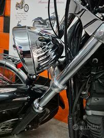 Fanale moto custom ideale per Harley e giapponesi con lampadine led già incorporata attacco H4,perfetto in tutto,cromature impeccabili.