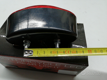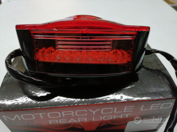 Fanale posteriore per moto, a led con luce targa e stop attacco a 2 fori, omologato.