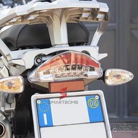 Video tutorial montaggio modello 1 : https://youtu.be/F78-PNQtPc0 Stop fanale led posteriore che integra oltre alla funzione normale di marcia anche 2 sezioni di indicatore di direzione . Dona assolutamente un look migliore alla propria moto , il fanale presenta la certificazione di omologazione europea (non registrazione). La qualità di produzione assicura automia equivalente all'originale , lo stesso può essere sostituito con lo stesso fanale led originario se qualora ne se presentasse un'eventuale ricambio. Colore disponibile trasparente e fumè Compatibilità con : F650GS/ST/DAKAR 2000-2013 F800GS/R/S/ST/ADV 2008-2017 R1200GS 2004-2012 Standard Adventure (K25) Specialità : - Il fanale ha un chip integrato a risparmio energetico , questo consentirà un maggior risparmio sulla batteria assicurando inoltre maggiore durata , la luminosità emessa non sarà alterata in negativo - Scocca anti vibrazione grazie ai materiali impiegati in produzione -Qualità produttive di alta qualità che assicurano la longevità del prodotto -Il fanale posteriore include oltre alla funzione di marcia anche 2 sezioni di indicatore di direzione -Migliora l'aspetto della propria moto , il seguente stop posteriore funge da sostituzione e da ricambio anche con gli stessi stop led originali -Chip intelligente a risparmio energetico che assicura basso consumo senza alterare la luminosità emessa -Garanzia Smartbomb PREZZO MODELLO 1 : 145€ PREZZO MODELLO 2 : 65€