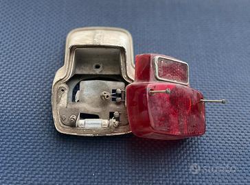 Gruppo ottico posteriore originale dell’epoca originale Piaggio. Prodotto dalla ditta Siem Integro, con viti in ottone e gemma di alta qualità. Corpo in metallo di colore buancospino credo di prima gernice. Vespa 125 primaverq Vespa 90 ss Vespa 50 ss Vespa nuova 125