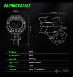 Fari fendinebbia per moto, 80 W, stroboscopici, LED, luci ausiliarie con 6 modalità di illuminazione
