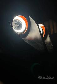 Disponibili fari LED per Malaguti Phantom F12(anche con modifica carena Aerox) e F15 con Angel Eyes integrati, in tre varianti di colore: bianco, blu o rosso. (Scrivimi per sapere la disponibilità -- in alternativa si possono realizzare su ordinazione). Questi fari offrono anabbagliante e abbagliante, garantendo più visibilità e un look moderno al mezzo. Gli Angel Eyes donano un effetto estetico pulito e riconoscibile, perfetto sia di giorno che di notte. Caratteristiche principali: o Faro LED con Ring Eye + Faro Centrale. o Modalità doppia luce: anabbagliante / abbagliante. o Installazione semplice con gommini antivibrazione e vite originale. o Alimentazione 12V DC (corrente continua). o Istruzioni di montaggio e cablaggio incluse. o Compatibile con: o Phantom F12 (1994-2006) o Phantom F12R o Firefox F15 (1996-2000) Contenuto confezione: o 1 supporto o 2 fari LED o Istruzioni dettagliate ? Guida rapida all'installazione: 1. Rimuovi i fari originali e conserva gommini e vite di regolazione. 2. Monta il nuovo supporto LED, inserendo i gommini recuperati. 3. Fissa il supporto con la vite originale e regola l'altezza del fascio. ? Collegamento elettrico (12V DC): o Nero: massa (negativo) o Rosso: positivo faro abbagliante o Giallo: positivo faro anabbagliante o Bianco: positivo Angel Eyes Puoi scegliere se collegare tutto a un unico interruttore o separare Ring Eye e faro principale con due interruttori indipendenti. ? Importante: Non collegare alla corrente alternata (AC) dei fari originali. Rischi luci instabili, lampeggi o danni ai LED. Collegamento consigliato: direttamente alla batteria, con eventuale adattamento allo schema originale. ? ? Disponibile anche devio luci a parte (+10€), per manubri naked o adattabili a quello originale. DIFFIDATE DALLE IMITAZIONI, Led project è l'originale che vi accompagna nella scelta di fari led per scooter dal 2022