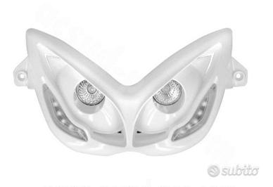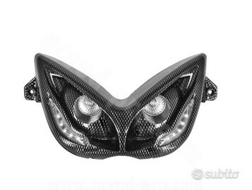 possibilità di spedizione o ritiro in negozio Faro anteriore fanale mascherina maschera lampada alogena tnt yamaha mbk nitro aerox con striscia led disponibile in colorazioni: bianca costo 39,00 euro carbon look costo 45,00 euro