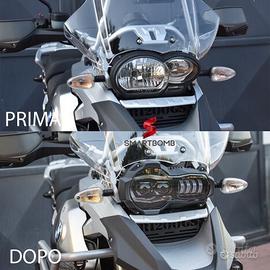 Prodotto con garanzia italia 2 anni + 1 anno smartbomb ufficiale PREZZO FARO CON PROTEZIONE PLEXIGLASS DAL VALORE DI 65€ REALIZZATA DA NOI IN ITALIA Garanzie reali e non fittizie , affidatevi ad aziende che fanno della soddisfazione del proprio cliente la sua soddisfazione primaria Ultima spec 2025-2026 Video montaggio con prova su strada prodotto direttamente da noi , visionalo qui : https://youtu.be/N2YRBzCsteY Ultima Generazione gruppo ottico ricambio con DRL 8 LED , è un plug diretto e riproduce l'unità per le motociclette specificate L'unità sostituisce completamente il gruppo ottico alogeno BMW OEM . L'installazione consiste nello scollegare e rimuovere il gruppo OEM e installare la nuova unità, collegarla utilizzando la spina originale standard.(facilità di montaggio disarmante) nessun codice errore qualità garantita valutazione extra sul motoveicolo considerato +25% preferenza e scelta sul motoveicolo approvata nessuna modifica con sistema plug&play(stacca e smonta) MONTAGGIO PER : -BMW R 1200 GS 2004 AL 2013 STANDARD ADVENTURE raffreddati ad olio MONOALBERO BIALBERO SPECIFICHE Tipo: fari FULL LED Funzione: DRL + Anabbagliante / Abbagliante Tensione: 12v Marca del LED: CREE Materiale: alluminio pressofuso + Pc Livello Impermeabilità : ip67 Potenza nominale: 110W (DRL 20W + anabbagliante 60W + abbagliante 30W) Temperatura : 5500k (BIANCO PURO) Peso: 2kg -Sistema plug&play senza effettuare modifiche -Nessun codice errore -Affidabilità certificata -Potenza nominale di 110W -Aspetto innovativo