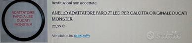 Faro Led HONDA DUCATI TRIUMPH ecc. completo di anello adattatore comperato e mai montato quindi nuovo acquistato da LEDPERF