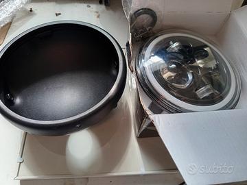 vendo faro come nuovo, dimensione da 7 pollici. con calotta e accessori per il montaggio. universale per diverse moto. Drl sia bianco che arancione. connettore H4. prezzo leggermente trattabile