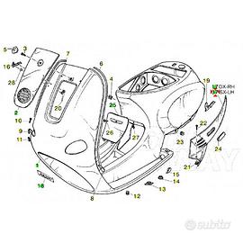 (R.8015) Vendo carena posteriore sinistra per Piaggio Vespa ET2 e ET4 50 e 125 cc dal 1996 per telai M0400 - C1200 - C1600 - 38100 , il prezzo si intende per singolo pezzo , per applicazioni vedere foto , disponibili più modelli :