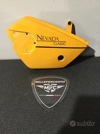 Descrizione: fianchetto sinistro originale Moto Guzzi per Nevada 750 Classic, disponibile in colorazione nera e gialla.