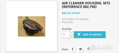 Filtro aria motore a bagno d'olio per moto d'epoca M72. Completamente originale e in ottime condizioni, necessita solo di pulizia accurata e piccolo ritocco alla vernice coperchio (visibile in foto).