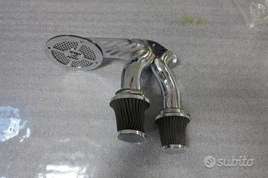 Filtro aria universale per moto custom , doppio, cromato. In perfette condizioni come da foto. N. IDENTIFICATIVO: S2610226 SPESE DI SPEDIZIONE GRATUITE PER ACQUISTI SUPERIORI AI €100, CON CORRIERE ESPRESSO, 24 ORE DA PAGAMENTO EFFETTUATO. SPEDIAMO IN TUTTA ITALIA. Telefono: 0114271576 Whatsapp: 3519115289 Strada Settimo 356, Torino E-mail: customtorino@gmail.com