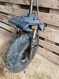 Forcella completa di impianto frenante perfettamente funzionante,ruota anteriore,plastiche sotto forcella,manubrio,piu plastica cupolino interno manubrio..