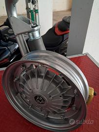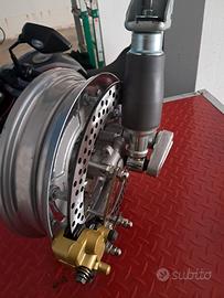 vendo per inutilizzo forcella con freno a disco ed ammortizzatore e cerchione nuovi.