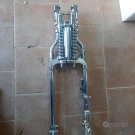 vendo fantastica forcella springer replica della heritage springer harley davidson......NUOVA E PERFETTA......omologata per tutte le harley davidson softail dyna e sportster. Vendo completa di :supporto pinza- tirante pinza- ammortizzatore centrale -piastra superiore-asse ruota-riser supporto manubrio.....completamente cromata......MAI MONTATA Nel suo imballo e scatola.....altre foto possibili e videochiamate per valutare la perfezione dell'avantreno. per info346 524 0798.disponibili a parte altri accessori come parafango anteriore.....pinza freno specifica........faro tipo springer.......kit 3 fari springer......cuscinetti di sterzo.....ruota anteriore........etc etc