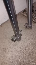 Forcella KTM 250, idraulica regolabile in compressione ed estensione, completa di piastre cannotto e perno ruota, steli e foderi in ottime condizioni. il piedino destro presenta una saldatura.