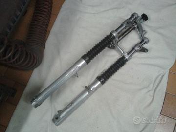 vendo forcella per benelli motobi sport special. le canne sono diritte ma purtroppo intaccate dalla ruggine nelle parti esterne ai foderi. attualmente monta dei soffietti per copertura. date le condizioni la cedo per 80 euro più spedizione.