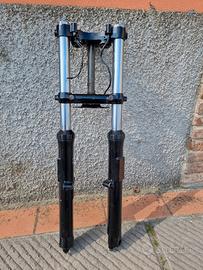 Vendo forcella Harley Davidson ironhead in buone condizioni generali. Componente originale per sostituzione su modelli Sportster. Avantreno completo(senza ruota) di piastre e spie luce olio e farò alto su piastra superiore,presenta comunque normali segni di utilizzo dovuti all'età. Prezzo trattabile.