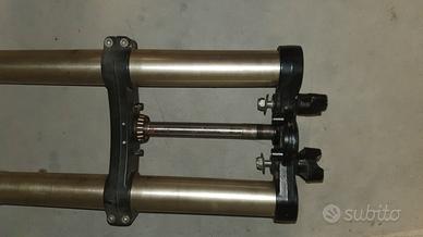 Rarissima Forcella Paioli upside down per Gilera RC600 in buone condizioni. Non presenta perdite o ossidazioni, completa di piastra superiore e inferiore. Steli da 41 mm e foderi dorati da 52 mm, Dato il peso e le dimensioni è difficile da spedire, ma lascio comunque la possibilità con Tuttosubito. Sarebbe meglio la consegna a mano fra Castelnuovo don Bosco, Moriondo, Chieri, Andezeno, Arignano, Pino Torinese, Torino, Pecetto, Moncalieri e zone vicine.