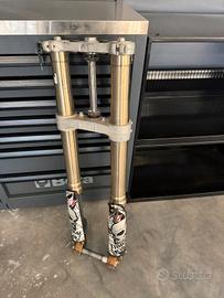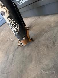 vendo forcelle marzocchi 50 complete di piastre ,riser ,perno ruota anteriore e parasteli, di derivazione husqvarna cr 125. le forcelle sono state rifatte completamente e hanno 0 ore. montano plug and play su husqvarna sm pre grazie allo spostapinza dedicato.