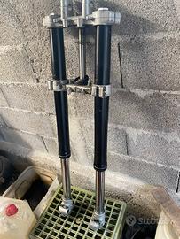 vendo forcelle marzocchi a steli rovesciati montate su un ch racing wsm 50, insieme cedo anche le piastre e il perno della ruota.