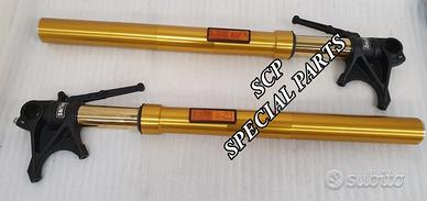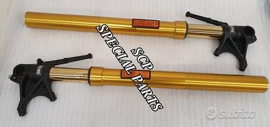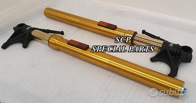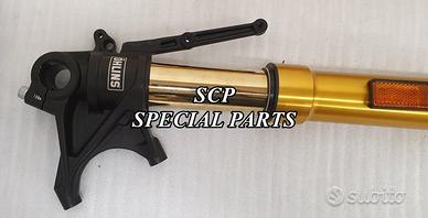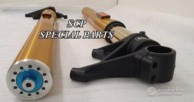 PROTOTIPIAMO E REALIZZIAMO AVANTRENO COMPLETO CON LE SUPERESCLUSIVE FORCELLE OHLINS NIX 30 CON STELO DA 48MM PER: DUCATI HYPERMOTARD 950 821 939 796 1100 MULTISTRADA 1200 1260 950 1000 1100 DUCATI HYPERSTRADA DUCATI DIAVEL DUCATI SCRAMBLER PROTOTIPIAMO E REALIZZIAMO AVANTRENI CON FORCELLE OHLINS ANCHE PER QUASIASI ALTRO MODELLO DI MOTO SU RICHIESTA AVANTRENO PLUG AND PLAY. SI MONTA SENZA MODIFICHE. Per ogni modello realizziamo un avantreno specifico. Kit costituito da: Forcelle ohlins NIX con stelo da 48 mm e fodero da 58mm, allestite in base ad ogni modello, piedini radiali con supporto sensore abs (ove previsto), kit piastre di sterzo speciali ricavate dal pieno e sovradimensionate, con piastra inferiore da 80 mm a 5 punti di chiusura con cave di alleggerimento passanti e piastra superiore a 3 punti di chiusura con cave di alleggerimento, completa di alloggio riser originali o per special con semimanubri. Le piastre di sterzo hanno tutti gli attacchi presenti anche sulle piatre originali. Tutto il kit si monta senza modifiche . Potete mantenere cerchio, pinze freni, sensore velocità abs e tutte le altre parti originali. Per il montaggio si utilizzano boccole e cuscinetti originali. Tutte le parti ricavate dal pieno possono essere anodizzate di qualsiasi colore. Possiamo progettare e realizzare qualsiasi specifica atta a rendere unica tale tipologia di prodotto. Tutte le parti ricavate dal pieno possono essere progettate anche secondo specifiche tecniche ed estetiche del cliente. Con i nostri kit potete sostituire l' avantreno di serie della vostra Ducati con il nostro con forcelle OHLINS NIX da 48mm! Le forcelle sono allestite specificatamente per ogni modello e in base alle vostre necessità di guida. Possiamo prototipare e realizzare kit piastre di sterzo speciali e kit di montaggio (perno ruota , boccole etc) anche per forcelle e cerchi di qualsiasi tipologia, forniti dal cliente.