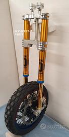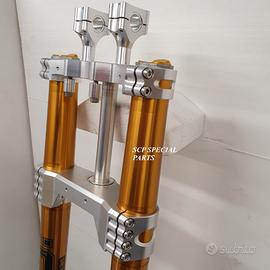 Progettiamo e Realizziamo avantreni speciali con forcelle ohlins su misura per: cafe racer, scrambler, custom, streetfighter, superbike, prototipi, show bike, maxi enduro, off road.