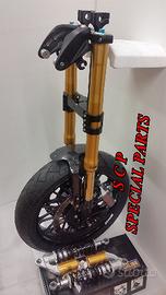 Progettiamo e Realizziamo avantreni speciali con forcelle ohlins per: cafe racer, scrambler, streetfighter, superbike, prototipi, show bike, maxi enduro, off road, custom.