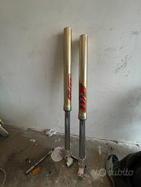 forcelle paioli con piedino radiale, una forcella è da revisionare/aprire perche probabilmente si è creata una bolla d’aria infatti risulta piu bassa, l’altra invece è perfetta, le forcelle sono regolabili, insieme posso vendere anche una pinza magura 4 pistoncini e le piastre. per il prezzo con anche le aggiunte delle piastre e della pinza scrivetemi. POSSO SPEDIRE