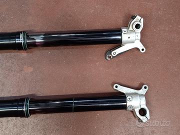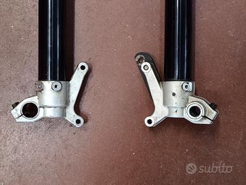 coppia di forcelle sinistre originariamente di una enduro 450, completamente regolabili, sono state leggermente adattate per essere montate su una africa twin e mostrano dei segni sovuti all'usura, necessitano di una revisione completa non compresa nel prezzo