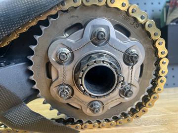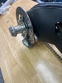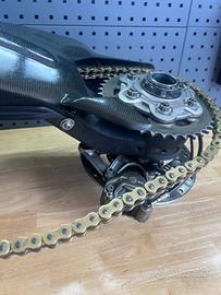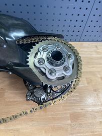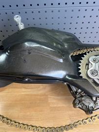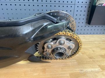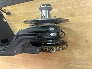 Forcellone completo di mozzo ruota, catena cover in carbonio, sensore fonica
