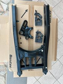 Forcellone posteriore proveniente da Ducati Monster 620, riverniciato a polveri e mai rimontato. Completo di piastra per montaggio pinza freno e sistema tendicatena (senza slitte scorrevoli a L).