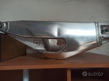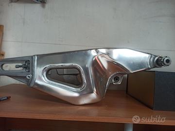 Buongiorno! Vendo forcellone a capriata rovesciata per rsv4/ tuono. Come si può vedere in foto il forcellone presenta alcune ammaccature figlie di una caduta a bassa velocità ma (ovviamente) sufficientemente sfortunata da rovinare il componente. I danni sono solamente estetici, forcellone dritto e simmetrico rispetto agli attacchi. Venduto con formula visto e piaciuto.