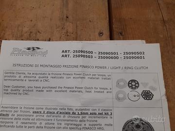 Vendo frizione Pinasco Touring Power clutch, adatta a Vespa PX125/150 prima serie con denti piccoli (no arcobaleno), Vespa Sprint, Super, Gt. Mai montata, condizioni pari al nuovo. Incluso nel prezzo, regalo pignone frizione DRT 23×67/68, allunga il rapporto di trasmissione originale, ideale per motori 177cc. turistici, non troppo elaborati.