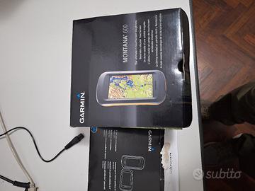 Vendo Garmin 600 Montana con box e vetrini, caricatore da rete ,caricatore patona per batteria interna, supporto x moto e varie prese x paesi europei. Usato pochissimo