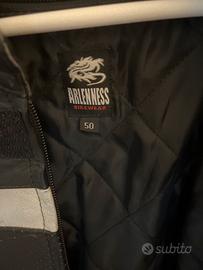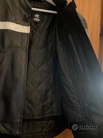 Giacca misura 50 in pelle tenuta bene con protezioni spalle e gomiti.