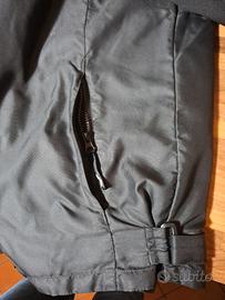 Vendesi giacca da moto AXO, modello Underground, taglia L Capo in buone condizioni, con normali segni del tempo, ma perfettamente utilizzabile; completa di protezioni originali su spalle, gomiti e avambracci. Vestibilità comoda. Ha una fodera interna removibile, quindi utilizzabile in diverse stagioni. Ideale per uso urbano, touring leggero o come prima giacca Caratteristiche: -Chiusura centrale con cerniera lampo -Tasche esterne con cerniera lampo -Polsi e colletto regolabili con velcro -Vita regolabile con cinghia -Fodera removibile a maniche lunghe e con tasca interna, fissabile con cerniera lampo interna alla giacca e clip sulle maniche Materiali giacca: PA (poliammide) Materiali fodera: PES (poliestere) Nota: Non predisposta per paraschiena.