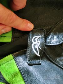 Giacca moto pelle Berik verde Kawasaki taglia 54 veste una L Protezioni spalle, gomiti e schienale incluse In splendide condizioni