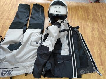 Vendo casco con giacca per moto in perfette condizioni, ancora nella scatola originale, taglia casco uno S l'altro M.