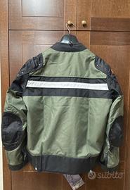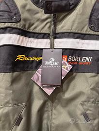 Giacca da moto verde, nuova con cartellino Borleni Motor Sports. Include protezione schiena, gomiti e spalle. Fodera rimovibile.