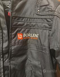 Giacca da moto nera, nuova con cartellino Borleni Motor Sports. Include protezione schiena, gomiti e spalle. Fodera rimovibile.