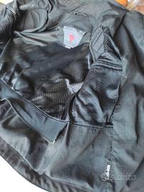 Vendo giacca da moto Dainese in tessuto tecnico Cordura, membrana Gore-tex, protezioni interne (spalla e gomiti), taglio sport-touring, interno in rete traspirante. Giacca 3 stagioni, capo tecnico di fascia medio-alta pensato per comfort, impermeabilità e sicurezza. Taglia uomo M.