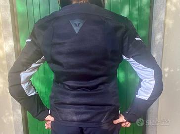 Dainese, taglia 48 ma veste 44, ottimo fitting, schiena e dettagli in mesh, leggero antivento interno staccabile con bottoni a pressione.
