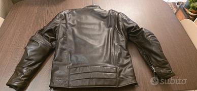 Giacca da moto 4 stagioni in pelle con protezioni gomiti, spalle e paraschiena. Tutto omologato, marca SHIMA e modello BLAKE. Taglia L, con interno termico optional modello WARMUP acquistato a parte con possibilita' di toglierlo. Usata una stagione.