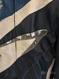 Possibilita di unirla con cerniera a pantalone Spidi. Usata per tragitti urbani quotidiani, quindi NESSUN DANNO O STRAPPO (mai cadute) ma la parte tinta in argento risulta logorata. Pelle morbidissima. Rinforzi gomiti, avambracci e schiena