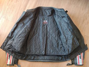 giacca in pelle con gilet trapuntato rimovibile, taglia XL, alloggiamenti per protezioni su gomiti, spalle e schiena, Vendo senza protezioni
