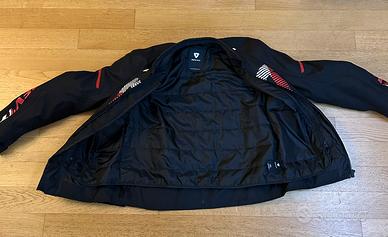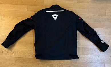 Vendo giacca da moto REV’IT! originale, modello sportivo in tessuto tecnico nero con dettagli rossi e bianchi.