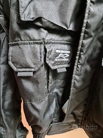 Giacca da moto nera Spidi, taglia Xl. Usata pochissimo, con giubbino interno staccabile con zip. Protezioni interne su gomiti e spalle. Con tante utili tasche. Unico difetto, il colletto del giubbino interno ha il colore argento che si è screpolato, come da foto