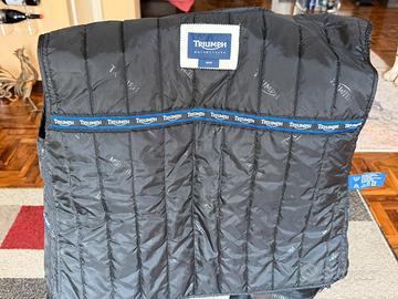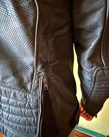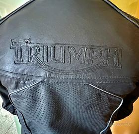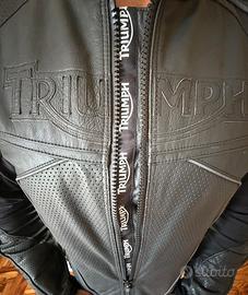 Giacca in pelle traforata della gamma Triumph Motorcycles Tg 48 Molto resistente e morbida. Traforata su petto e schiena, pelle pieno fiore su spalle e lati, tessuto robusto nell interno braccia per una miglior vestibilità e mobilità. Imbottitura interna estraibile con cerniera Protezioni su gomiti spalle Perfetta!!